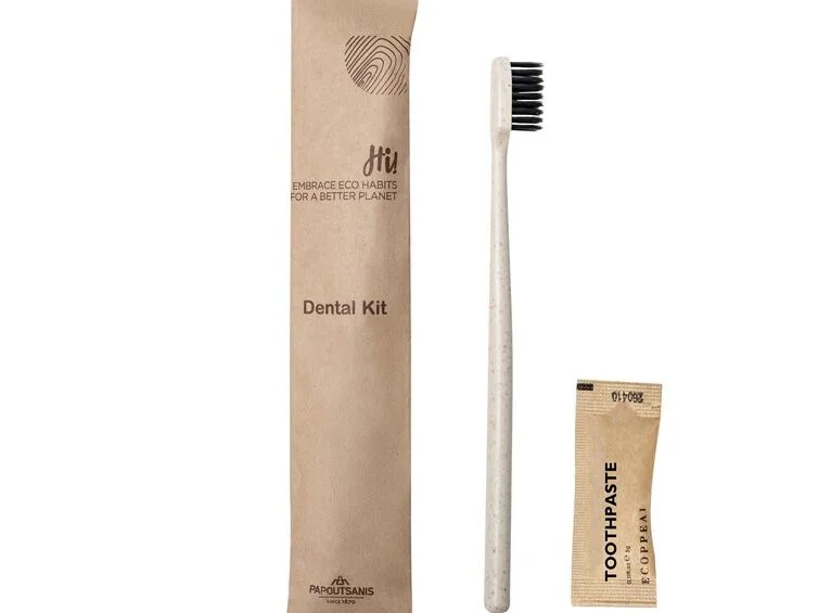 Komplet za zobno higieno (lesena zobna ščetka, narejena iz bambusovih vlaken +3gr zobne paste v unikatni papirnati vrečki). Set je zaradi naravnih sestavin okolju prijazen.