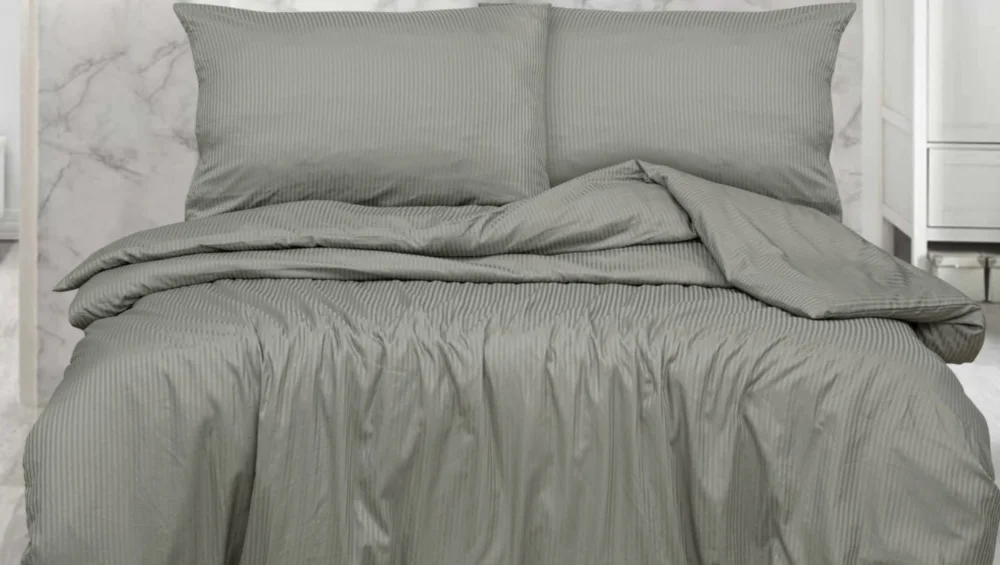 Posteljni komplet iz satena Lisa, črte 5 mm, siva
