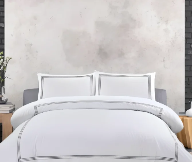 Posteljni komplet Silver, saten, bela s srebrno vezenino