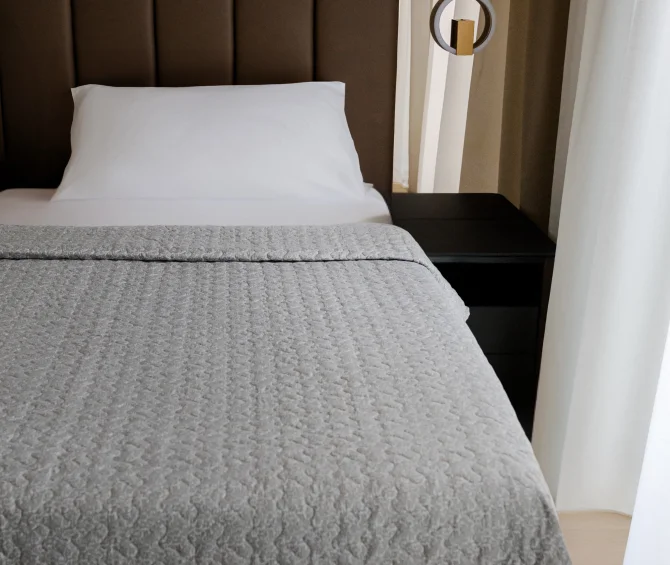 Prešito pregrinjalo Harmonija, stkano iz visokokakovostne in izjemno mehke tkanine, vas bo očaralo z nežnim vzorcem drobnih rožic, ki v prostor vnesejo toplino, mehkobo in pridih romantične umirjenosti. Lahkotno, a prijetno toplo, vas bo razvajalo v vseh letnih časih – bodisi kot popoln zaključek razkošne hotelske postelje, čaroben detajl apartmaja ali srce vaše domače spalnice.